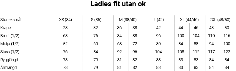 F – Ärmlängd: Mät ärmlängden på en något böjd arm – från axelns högsta punkt till handleden. Det går bra att lägga till någon centimeter om en något längre skjortärm önskas.